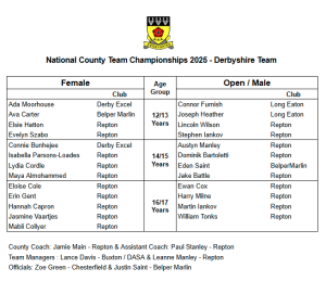 Coaches: Ash Morris – Repton & Oliver Tipping – Long Eaton, Team Managers: Lance Davis – DASA/Buxton & Leanne Manley – Repton